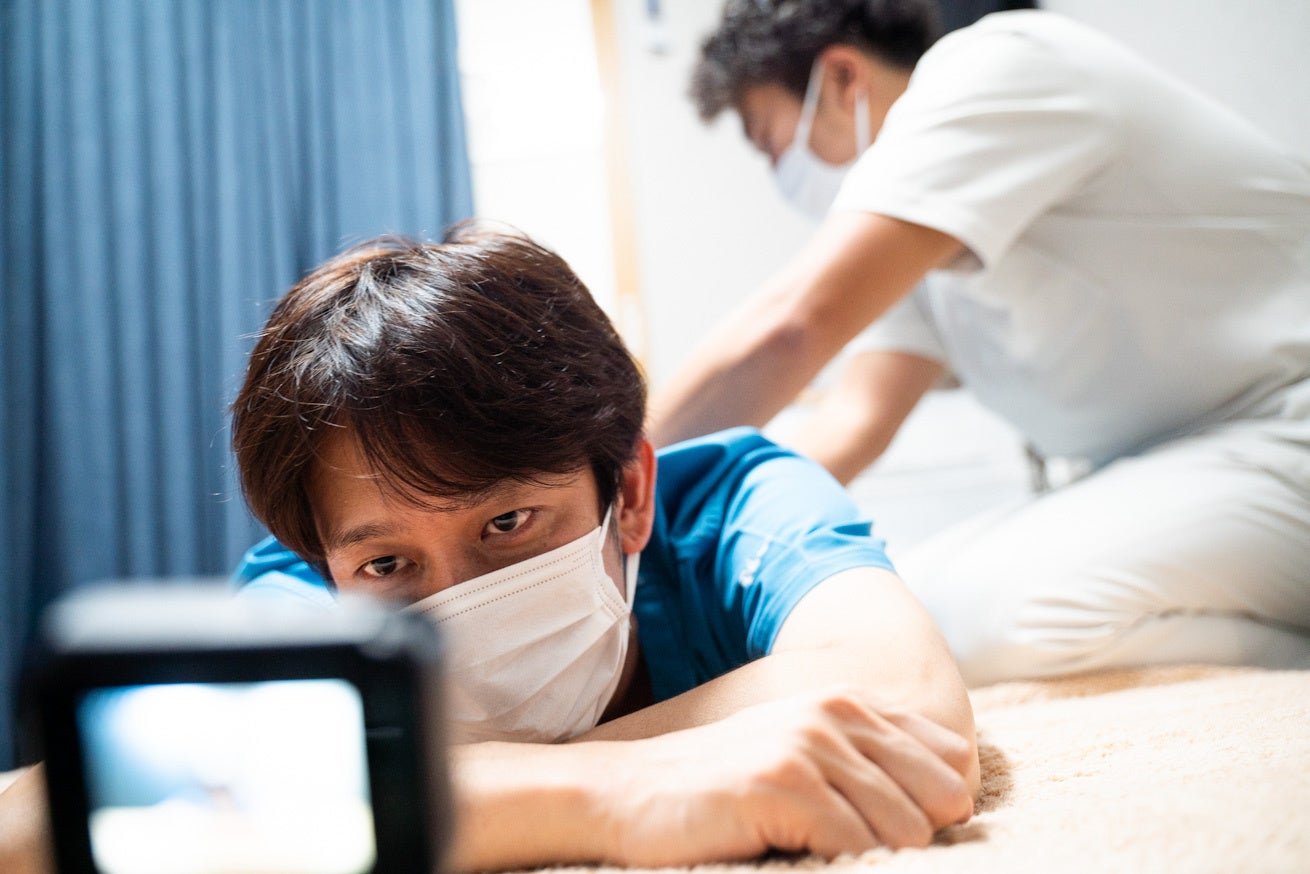 しゅんしゅんクリニックPさんの撮影は、2日間に渡って行われました。1日目は入塾説明から始まり、テストと体験授業を終え、学生時代ぶりのテストでお疲れのしゅんしゅんクリニックPさんに、弊社の専属整体師の施術を受けていただくことに。久しぶりの勉強づくしの一日を振り返りながら、リラックスされていました。