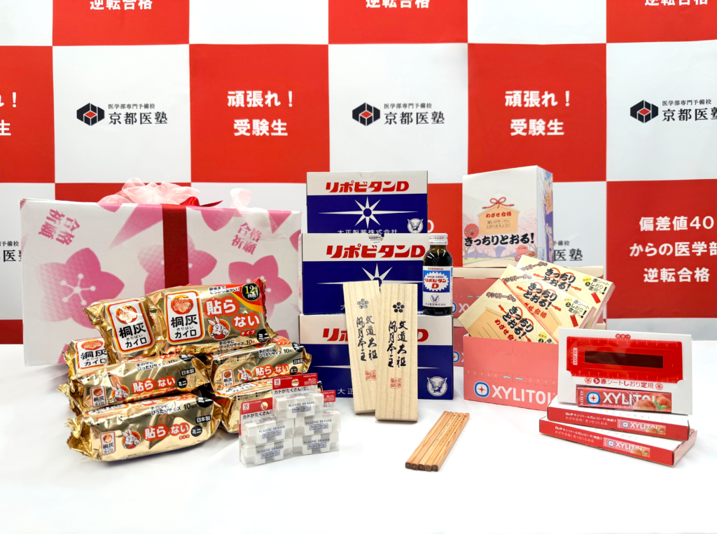 京都医塾では、2023年から毎年、大学入学共通テストを皮切りとした受験本番に向けて追い込みを行う受験生のために『医学部受験合格祈願応援キット』を制作しています。